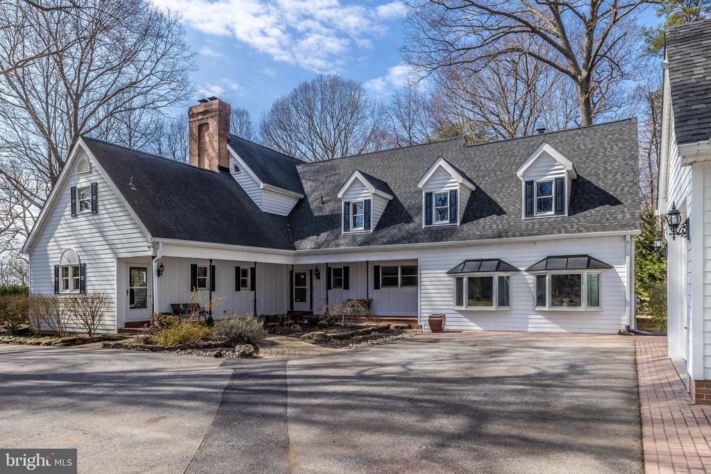 Welcome home! The sunrises are amazing and the sunsets are inspirational in this five bedroom, architect-designed - nearly 4,500 square foot, two-level colonial that sits nestled in privacy along Lyons Creek and the Patuxent River amid 5.8 acres of woodlands and waterfront. Includes a private pier/dock with a boat lift as well as community boat dock. Massive kitchen and living room with multiple attached porches and patios are perfect for entertaining. Three of the Five bedrooms (including the large downstairs owners’ suite & 2 west-facing bedrooms upstairs), have open views of Lyons Creek and the Patuxent River. Check out the upper and lower verandahs perfect for contemplative morning coffee times or evening reading with a glass of award wining wine. The upstairs bedrooms each come with walk-in closets, private entries to the covered verandah, and a jack-and-jill bathroom. The third upstairs bedroom is east-facing and spacious with an extra large walk-in closet, and an even larger adjacent unfinished attic space that has many potential uses. The downstairs guest bedroom is east-facing and adjacent to a large, well-lit rec room with wood-burning stove and private entry. It also has direct access to a full-size bathroom with a jacuzzi tub. This guest bedroom can alternatively be used as a downstairs private office. The modern kitchen is well-equipped with spacious granite countertops, a 6-burner Viking gas stovetop, Wolf multi-function full-size oven, built-in CAFÉ Advantium microwave & convection oven, Kenmore dishwasher, abundant oak cabinetry and floors throughout, built-in kitchen desk, and a large refrigerator that blends seamlessly with the wooden cabinetry. The house is designed with gatherings in mind, and the open-plan, eat-in-kitchen, and adjacent living area share an awesome 2-sided fireplace (originally woodburning, converted to gas). The downstairs owners’ suite includes a large bedroom, two walk-in closets, and an adjacent bathroom suite with heated stone tile floors, a soaking tub with waterfront views, a stone tile shower, individual his and her sinks, and a privacy closet with toilet and a separate sink. An additional ‘hobby room’ provides a 2nd refrigerator and additional cabinets and countertop spaces, as well as a built-in ironing board, for crafting and storage. This room adjoins the spacious laundry room next door which has additional storage cabinets. Beyond the laundry room, there is an additional climate-controlled storage room for cleaning and maintenance supplies. For vehicles and additional storage, there is a detached 3-car garage with an open upstairs loft space. The garage includes an attached fully-enclosed garden shed on one side, and an attached carport on the other. The Patuxent Palisades neighborhood is a highly desirable community. The neighborhood amenities include a shared park with pond, paved walking trail, play equipment, and tables and chairs for picnicking; a boat dock on the Patuxent River; and seasonal community activities. Experience and view the wonder of nature with bird-watching, boating, kayaking, canoeing, paddleboarding, water-skiing, hiking, camping, and fishing available right in your backyard. This easy to maintain 5.8 acre lot offers plenty of room for exploring. The Chesapeake Bay is less than 15 miles to the east, and Washington DC is only 30 miles to the northwest. For the everyday necessities, Dunkirk Town Center, with three grocery stores and all the other services, is just minutes away . Schools are close by as well. Check out the community park. Community has a gated private dock access for larger boats. Call your Realtor and come see this unique and delightful property.